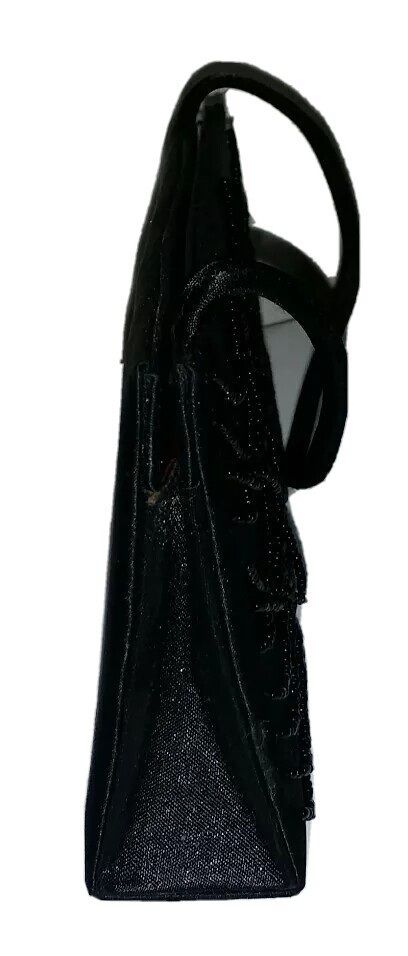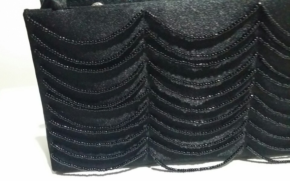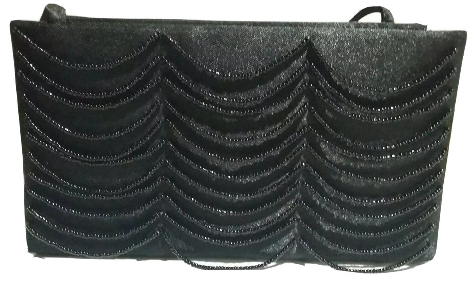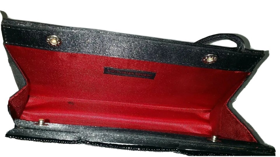 》 Victoria's Secret Black Satiny Bead Evening Clutch Purse Handbag Red Lined