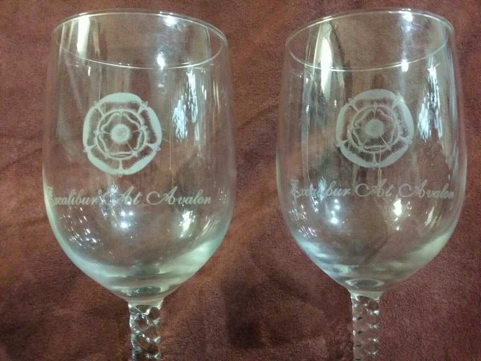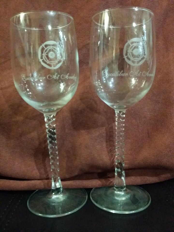 2 Clear Excalibur at Avalon Engraved Wine Glasses