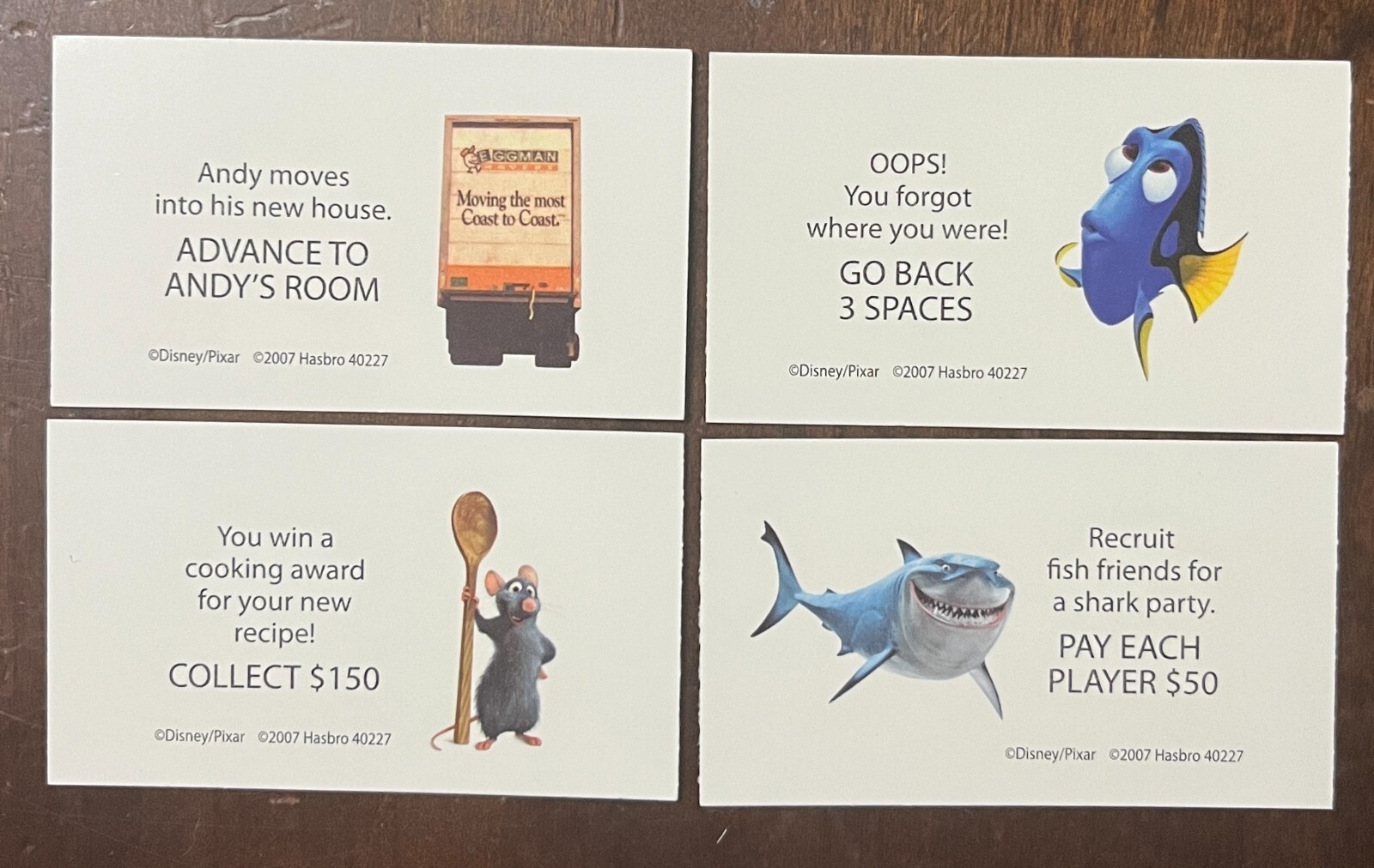 2007 Pixar Edition Monopoly Replacement Pieces: 4 Piston Cup Cards