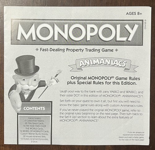 Monopoly Animaniacs 2019 Game Part- and 50 similar items