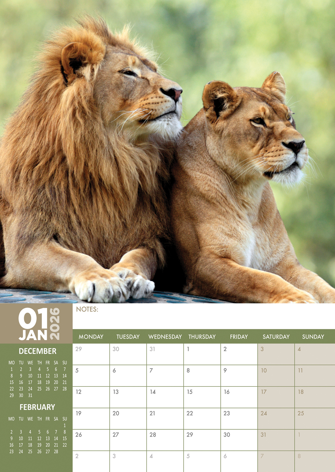 The Safari Calendar 2026 is a high-quality A3-sized calendar published in 2025. Designed for wall mounting, this English-language calendar is perfect for offices and businesses. With its sleek design and practicality, it serves as a stylish and functional addition to any workspace. Stay organised and on top of your schedule with the Safari Calendar 2026.