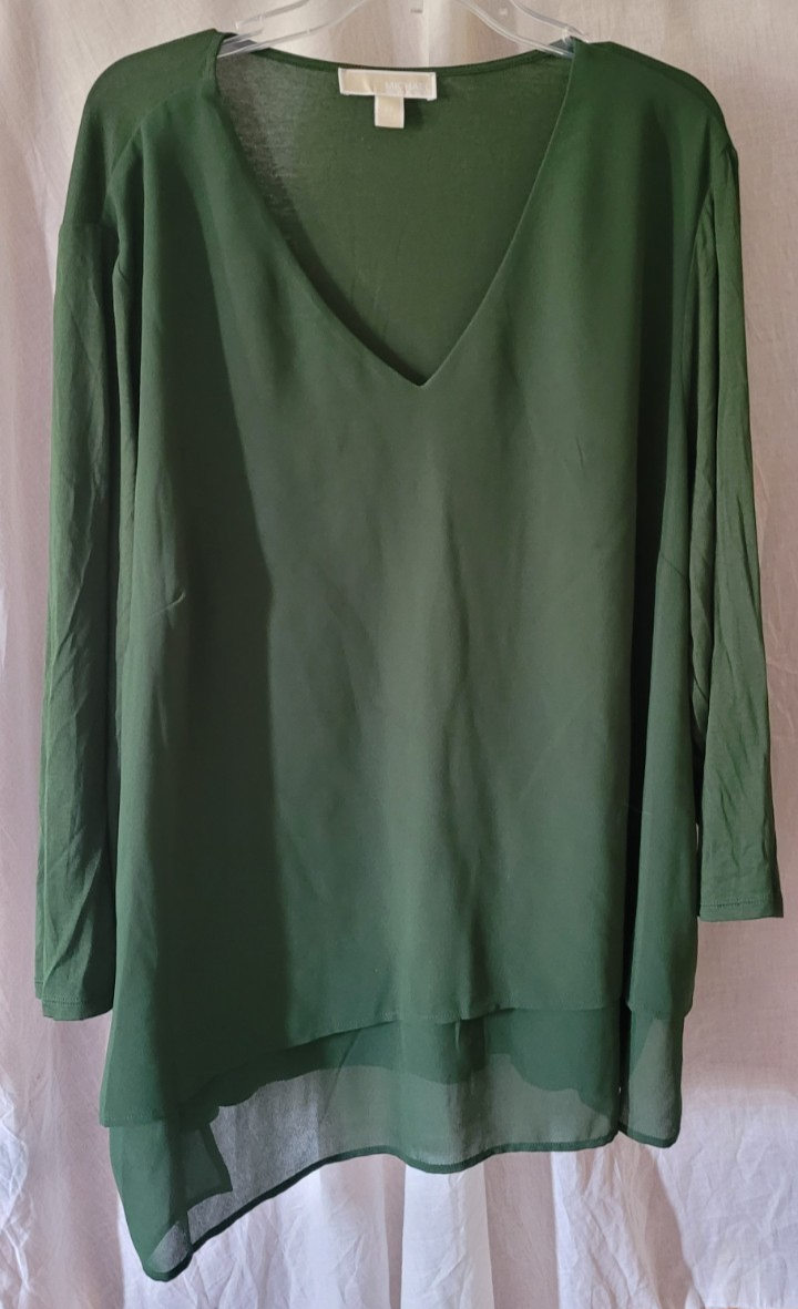 Women's Michael Kors Pullover Dress Shirt Size 3X Solid Green Sheer Outer Layer