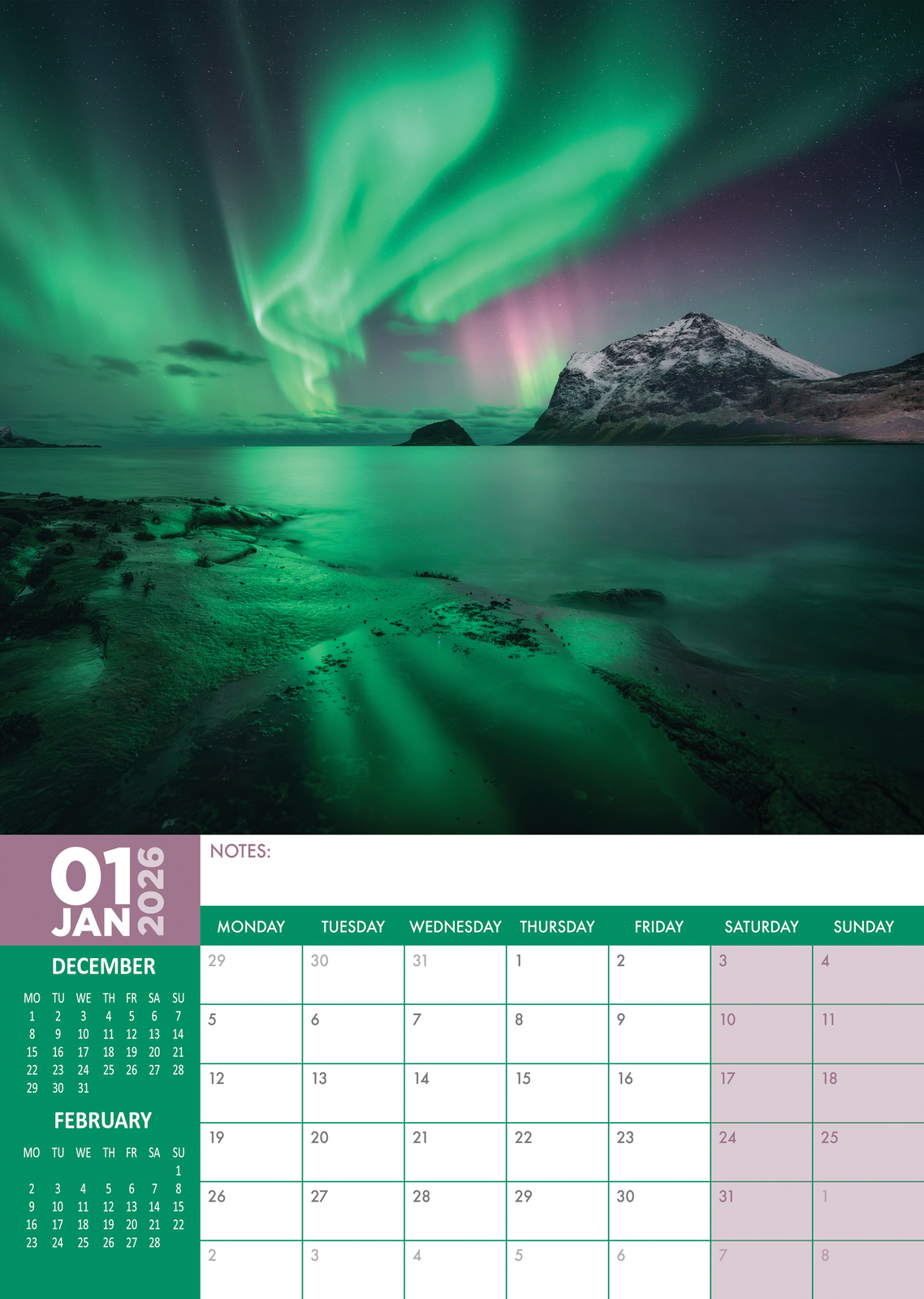 Aurora Borealis Calendar 2026
