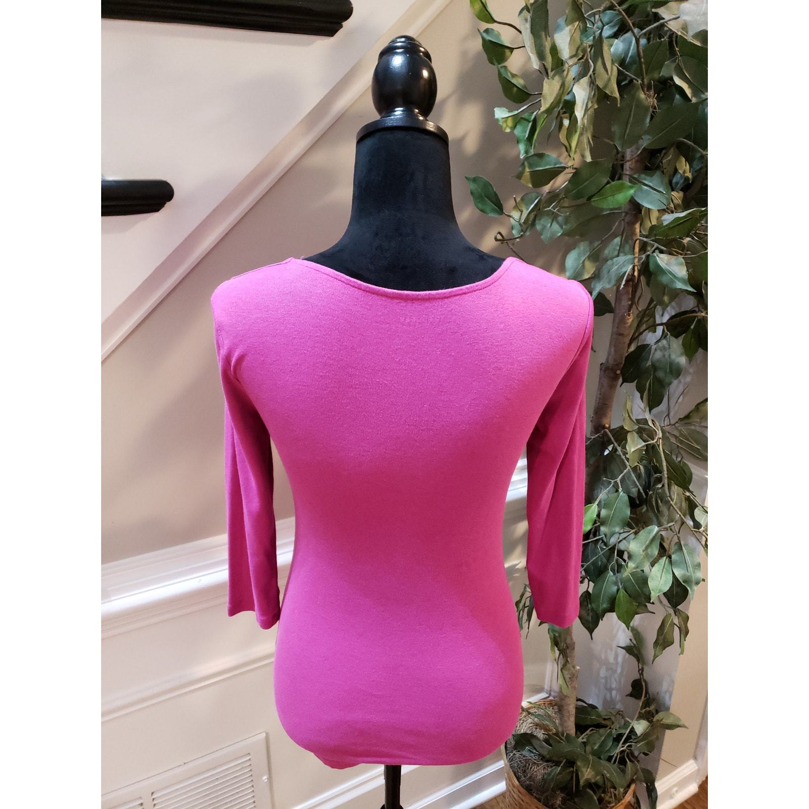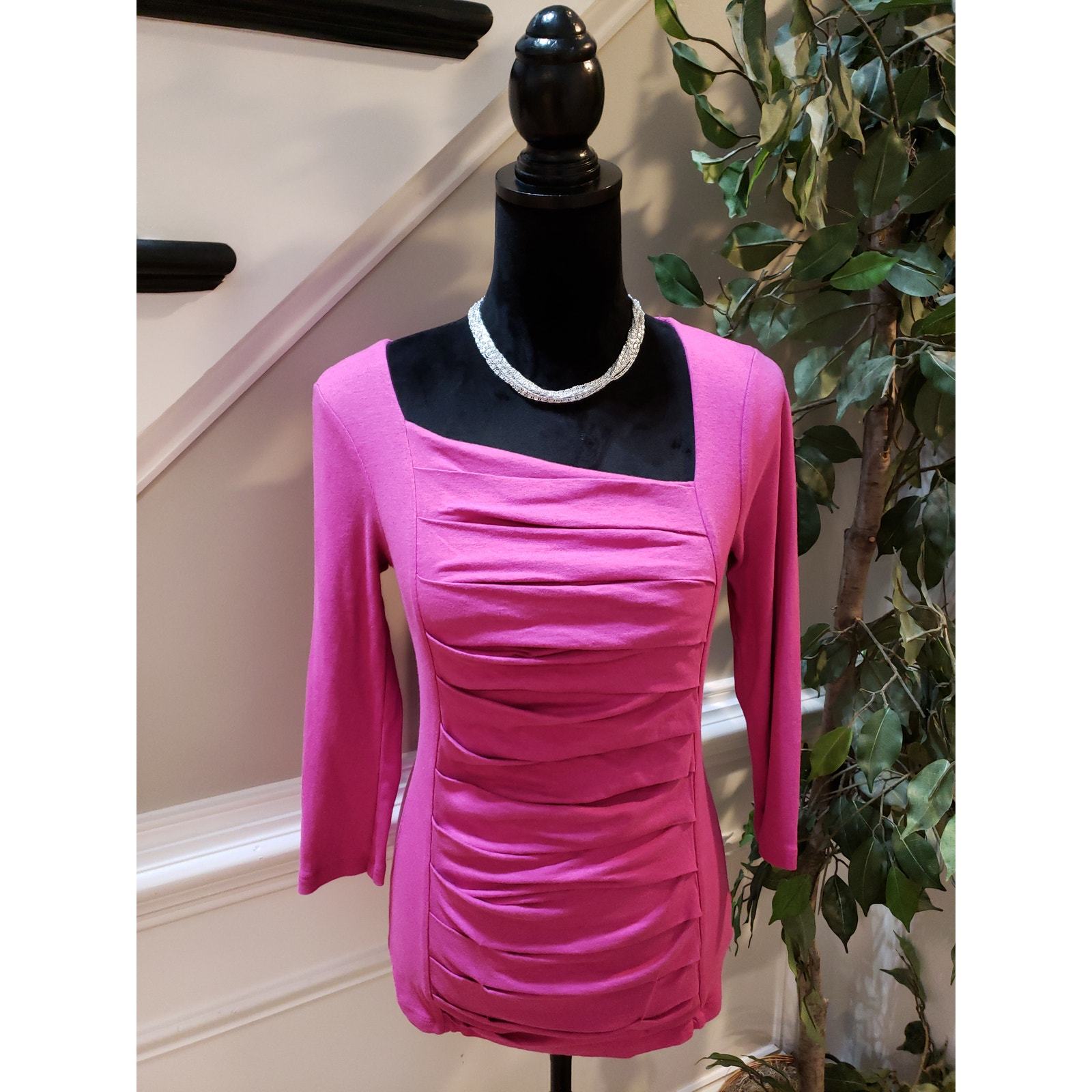 Express Women's Small Pink Ruched Square Neck Stretch Top 3 4 Sleeve