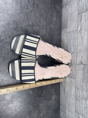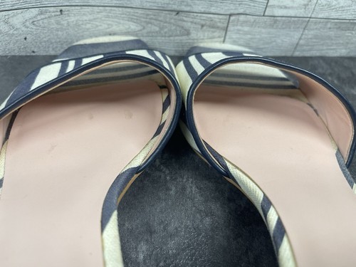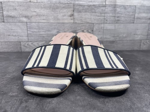 Kate Spade New York Slides Women 8.5 B Cambrey Shoes Blue Beige Canvas Striped