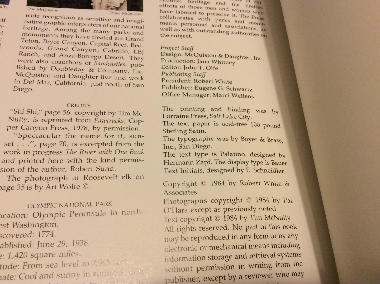 OLYMPIC NATIONAL PARK by TIM McNULTY WHERE THE MOUNTAIN MEETS THE SEA Softcover