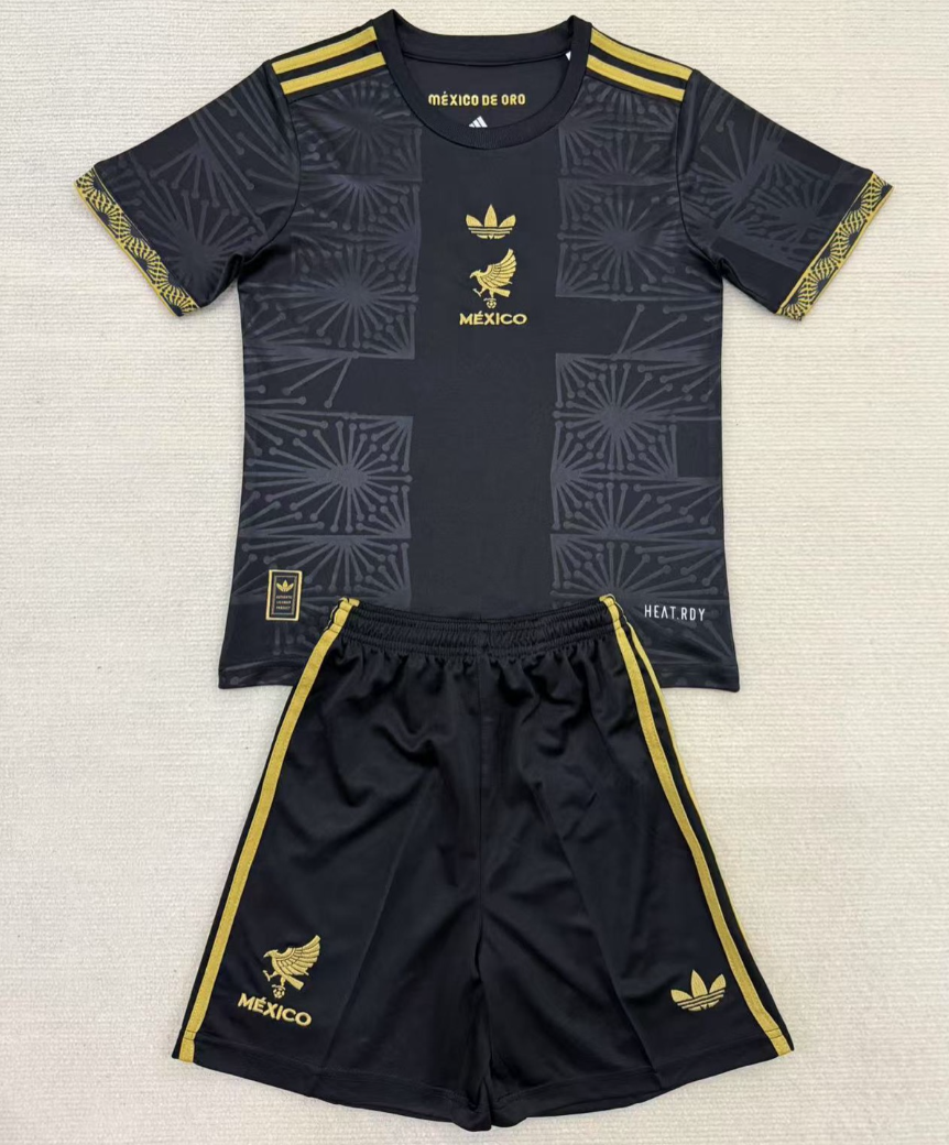 Kids Mexico 2025 Gold Cup Black Kits Shirt Youth Jersey With Shorts