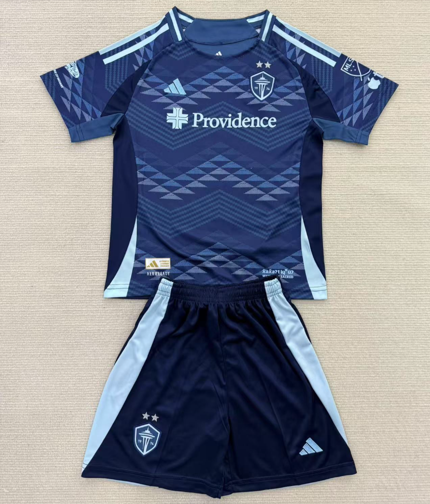 Kids Seattle Sounders 2025 'Salish Sea' Away Kits Shirt Youth Jersey With Shorts