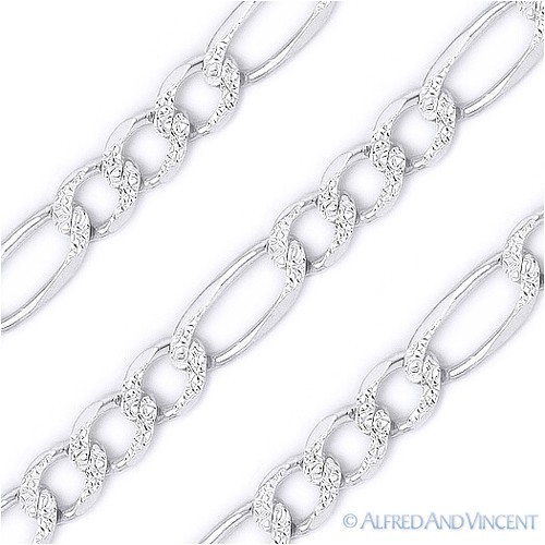 5.5mm Figaro / Figaroa D-Cut Pave Link Italian Chain Necklace in .925 Sterling Silver