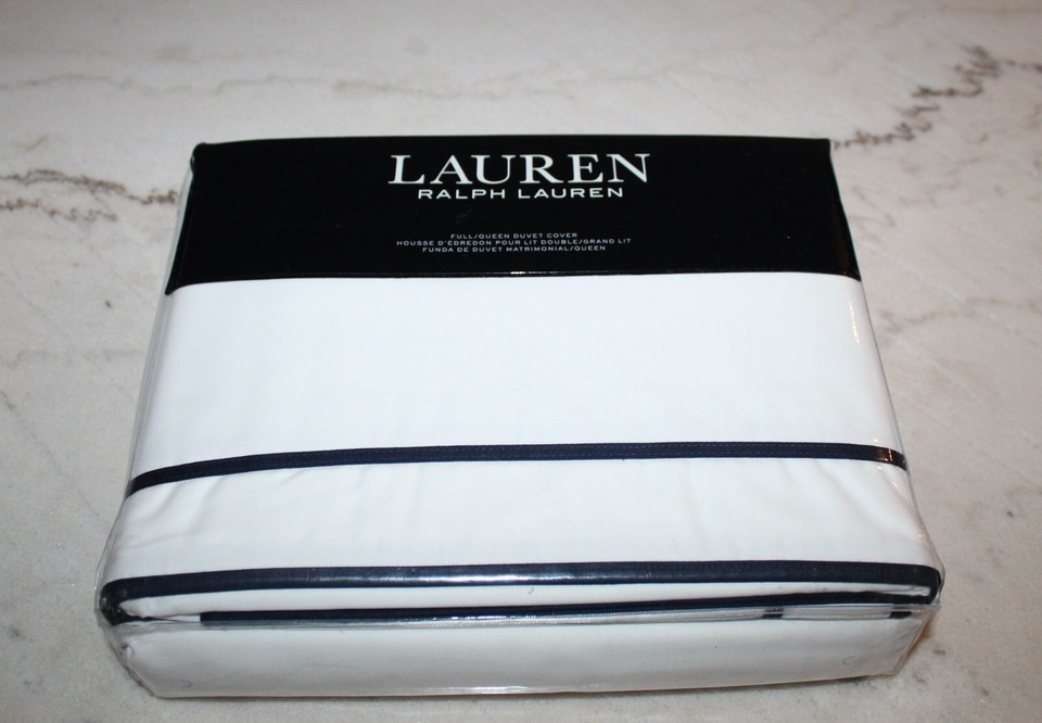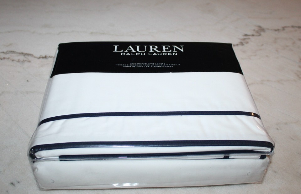 Ralph Lauren Spencer Cotton Sateen 300 TC Full/Queen Duvet Cover $335 Navy/White