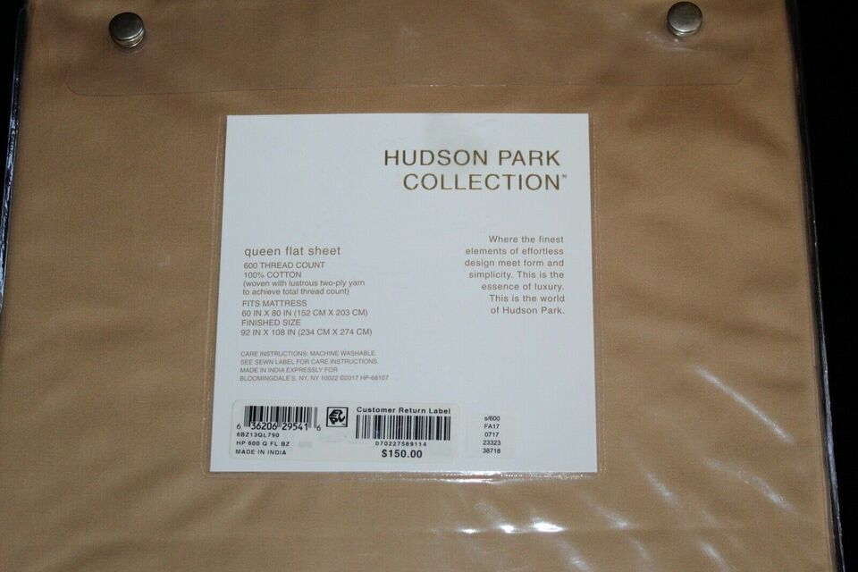 Hudson Park 600TC Cotton Solid Queen Flat Sheet $150 Bronze