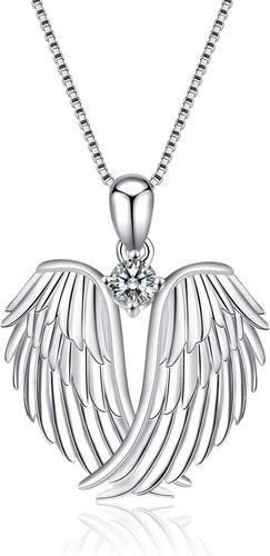 Guardian Angel Eagle Wing Open-Cutout 925 Sterling Silver Charm Necklace Pendant