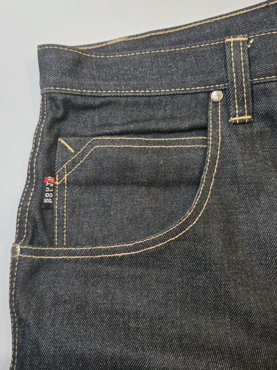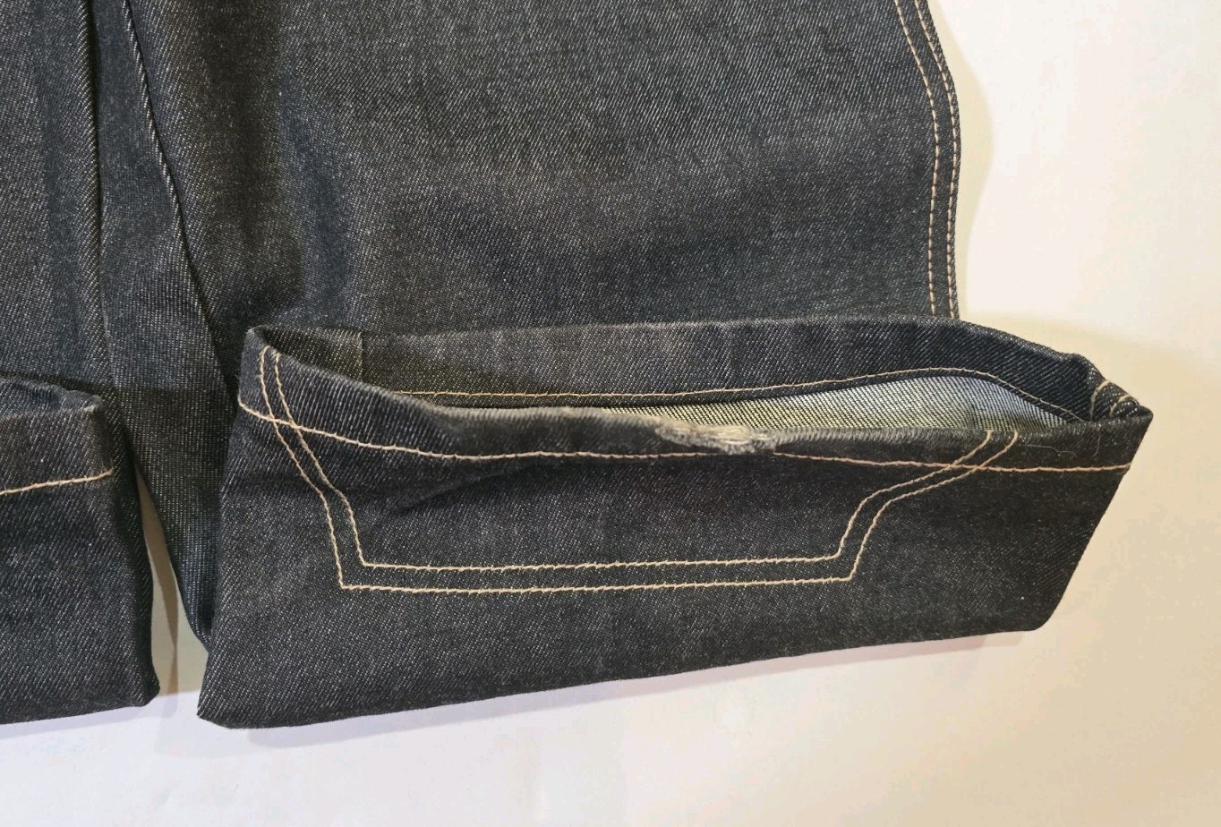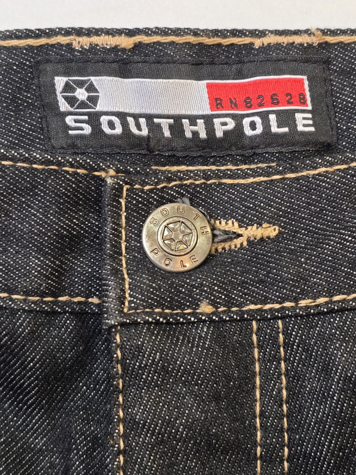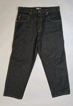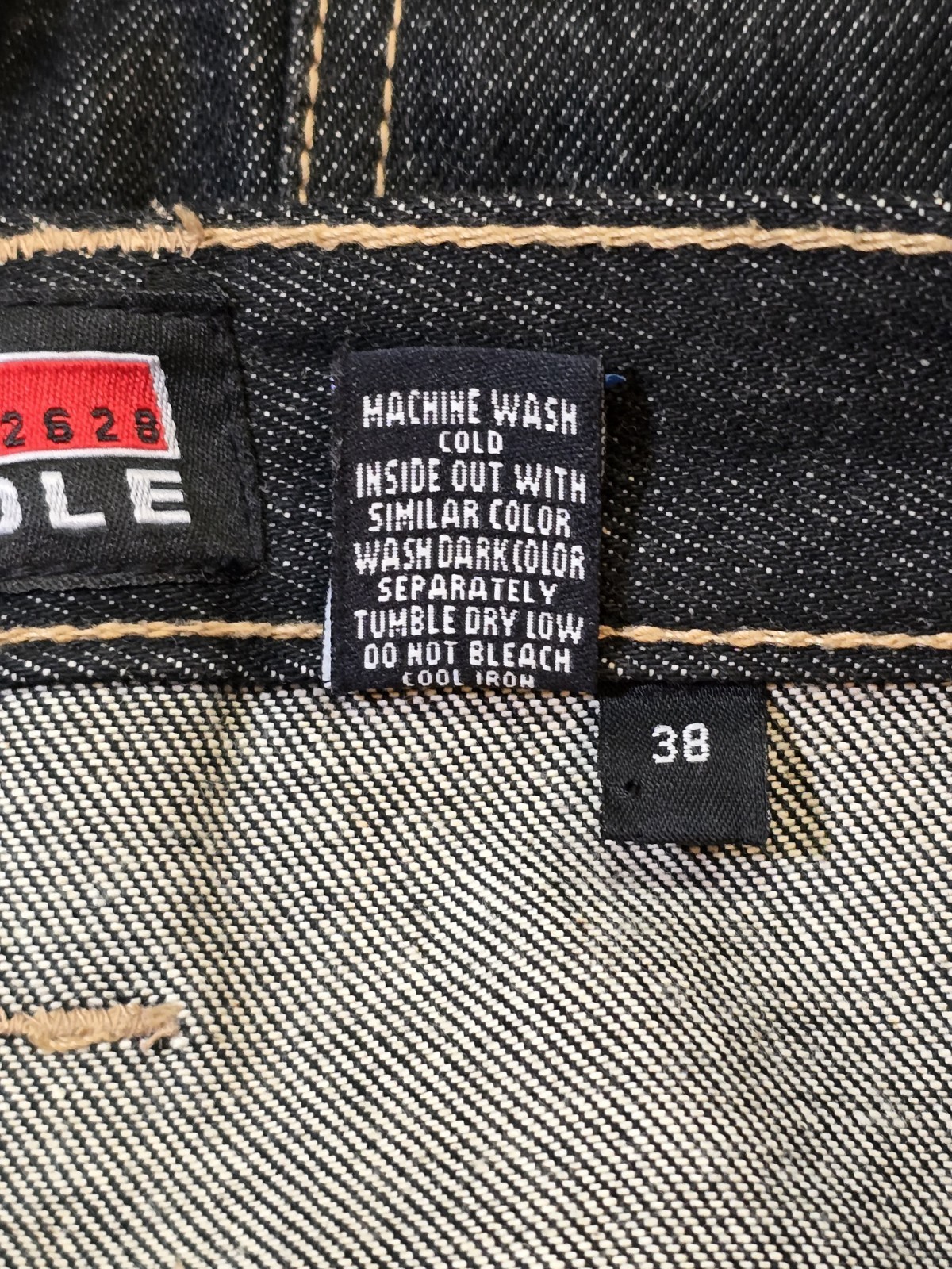 Please see all photos including two photos that show leg cuff heal drag wear. Some logo wear on back leather logo tag. The product is a pair of NWT Southpole Embroidered Carpenters Jeans in size 38, featuring a wide leg fit in black denim. These jeans are made of cotton denim with a dark wash, and have a solid pattern with embroidered accents. They have a zip and button closure, a high rise, and are machine washable for easy care. These relaxed fit jeans also feature pockets for added convenience and comfort, making them a stylish and practical choice for men's wardrobe.