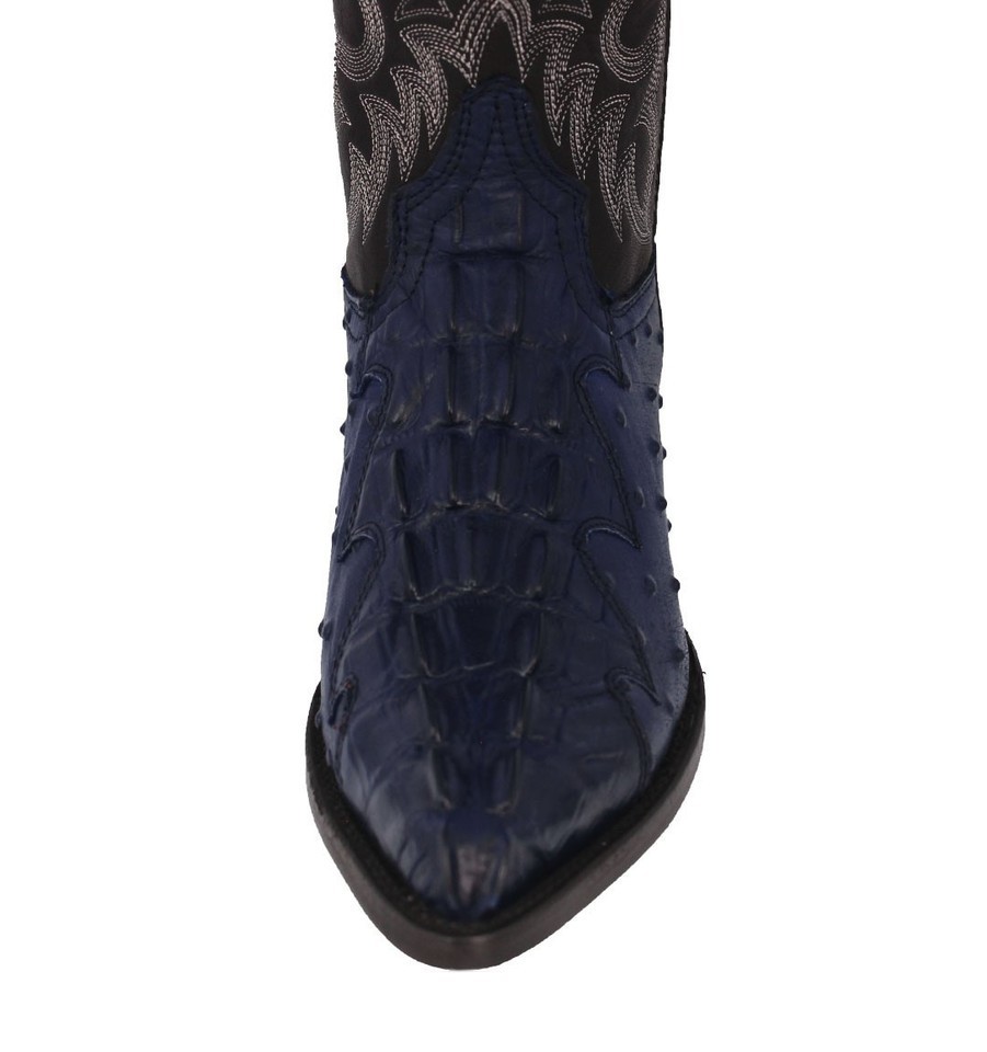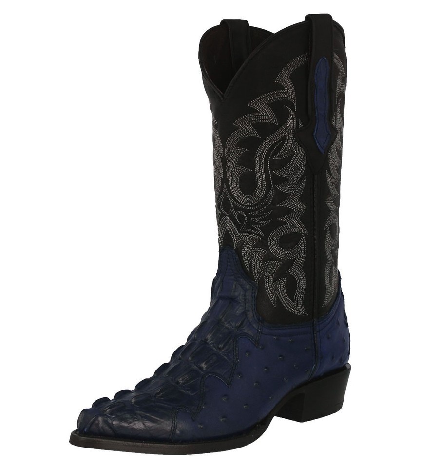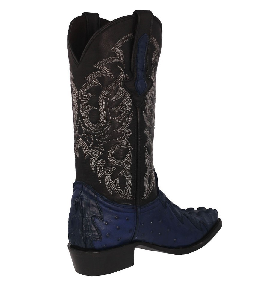 Mens Denim Blue Cowboy Boots Leather Crocodile Ostrich Print Western Size 6-9