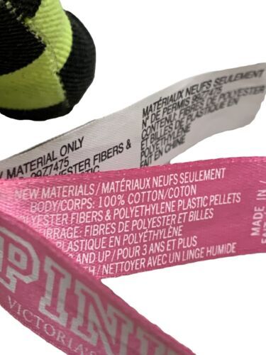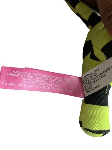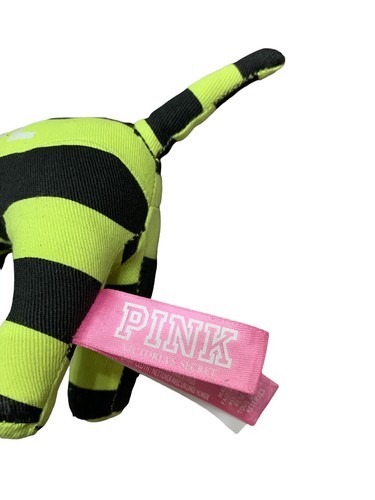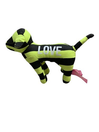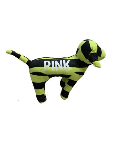 VS Victoria's Secret PINK LOVE Green Black Stripe " Plush Mini DOG. Very cute
