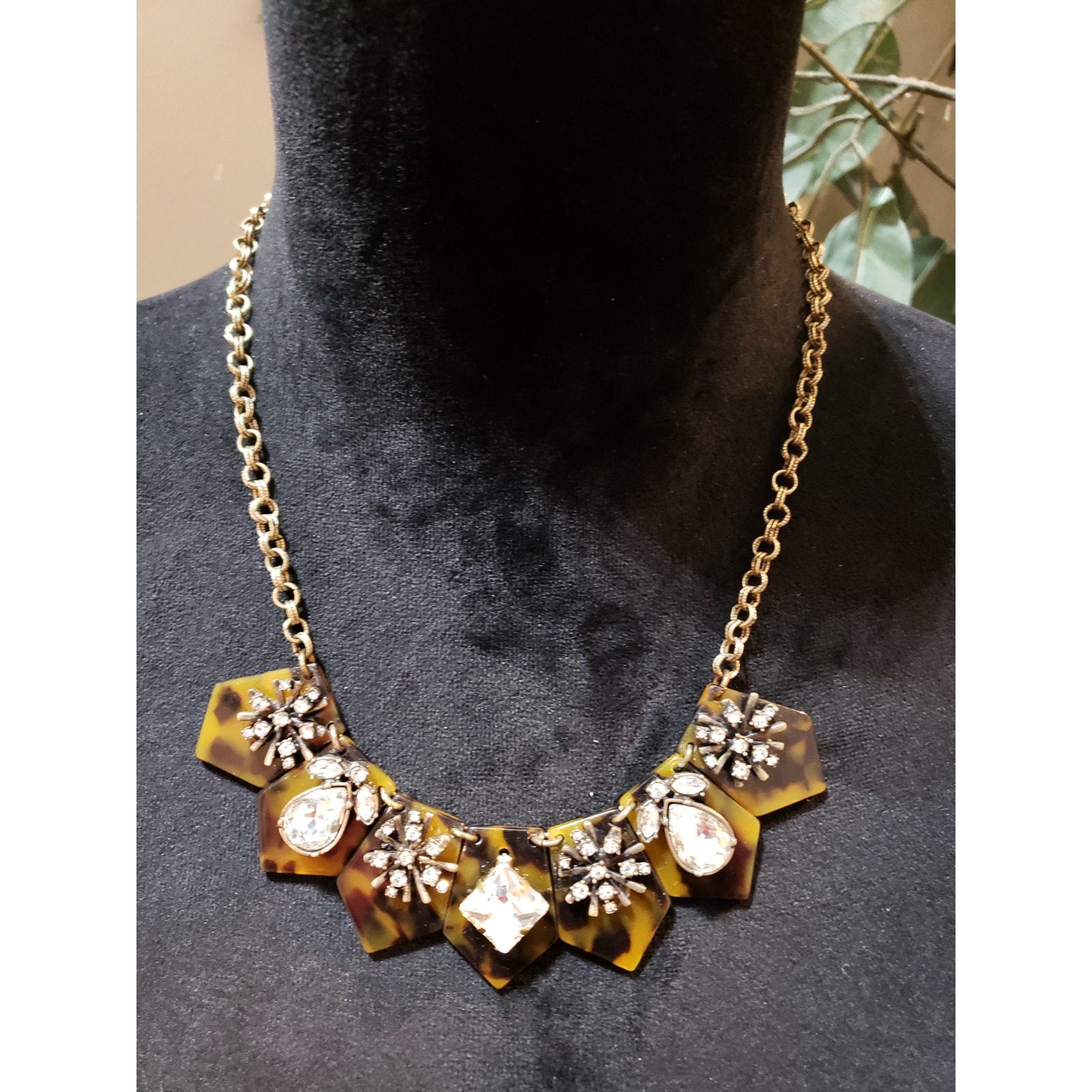 Womens Faux Tortoise Shell Rhinestone Crystal Beads Statement Necklace Jewelry