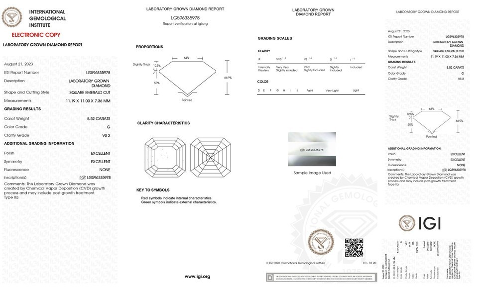 Authenticity Guarantee 8.52 Cts ASSCHER Cut IGI Certified Lab Grown CVD Diam...