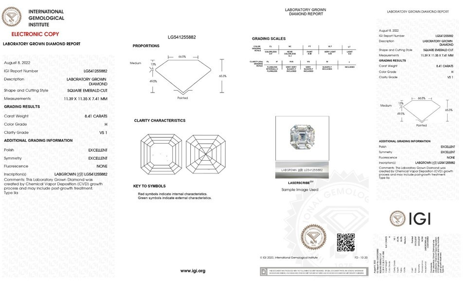 Authenticity Guarantee 8.41 Cts ASSCHER Cut IGI Certified Lab Grown CVD Diam...