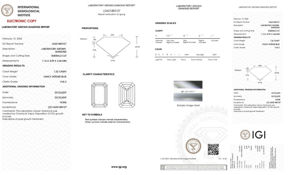 Emerald Cut 1.22 Cts Fancy Vivid Blue VVS2 IGI Certified Lab Grown CVD Diamond