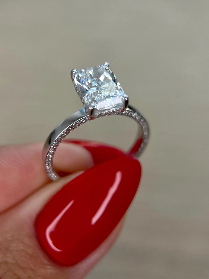 2.20 Carat Radiant Shape E/VS2 Lab Grown Diamond Engagement Ring 14k White Gold