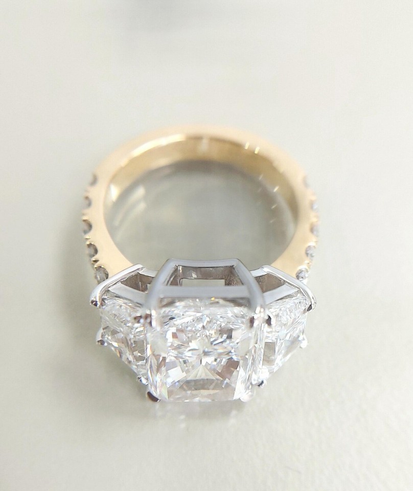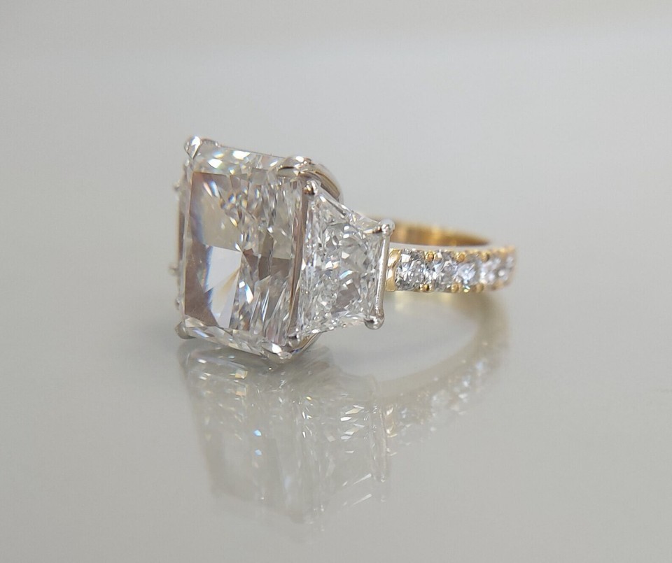7.00 Carat Radiant Cut F/VS1 Lab Grown Diamond Engagement Ring 14k Two Tone Gold
