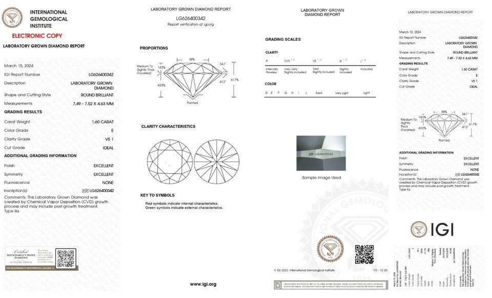 1.60 Cts Round Cut IGI Certified Lab Grown and 50 similar items