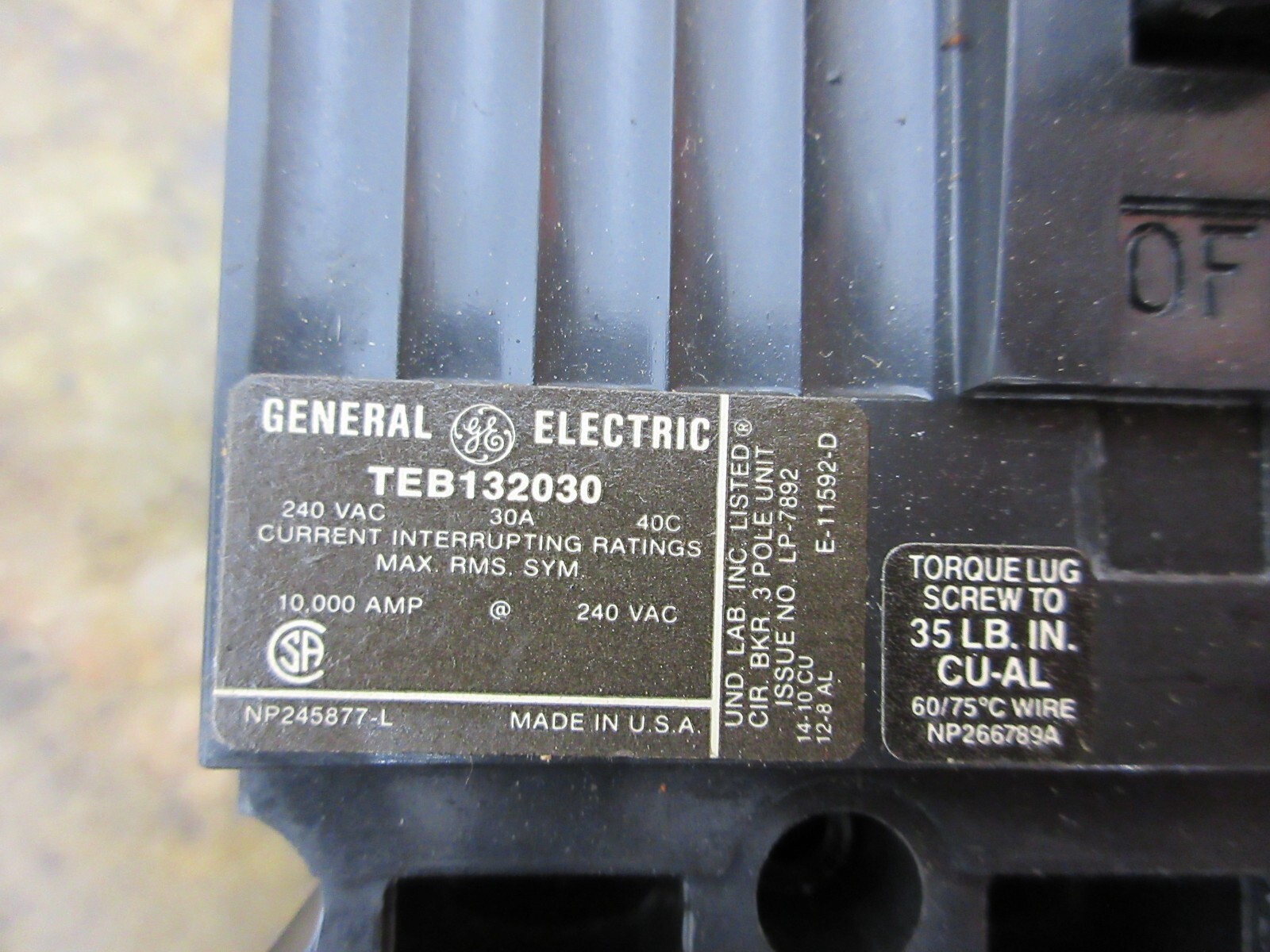 1992 Haas VF1 Ge Général Électrique Disjoncteur TEB132030 240VAC 30A 40C