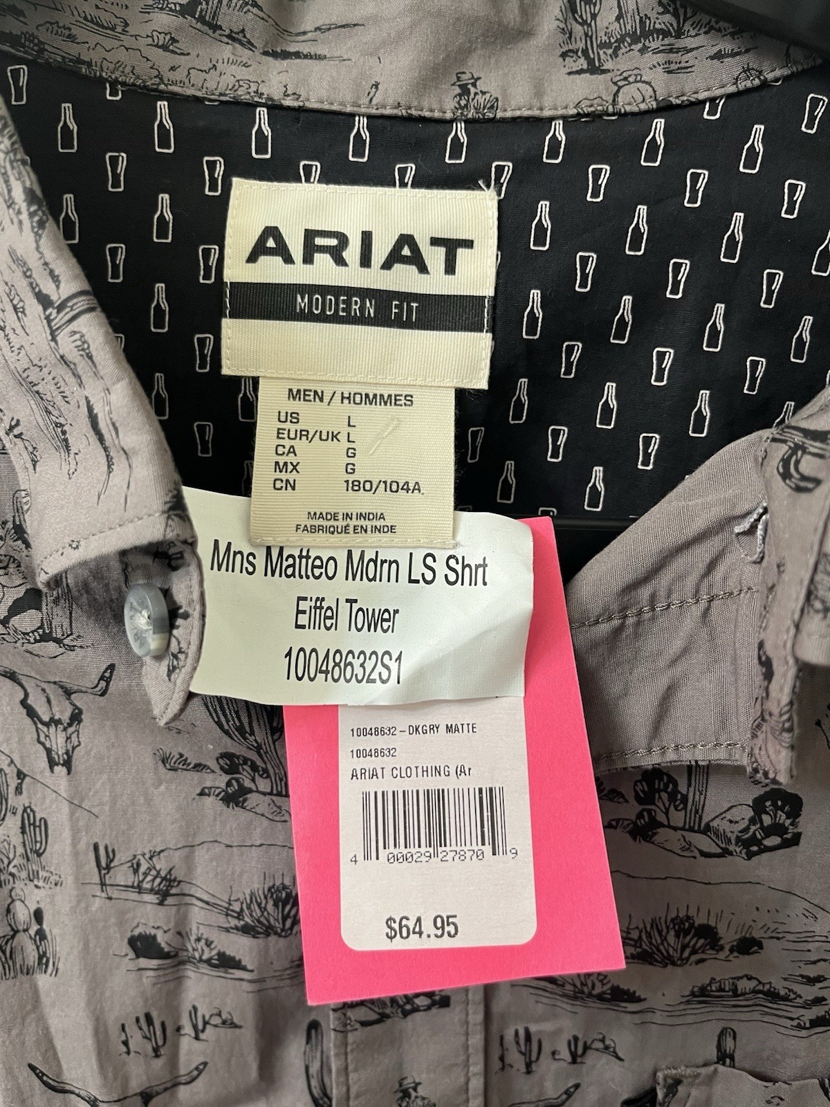 NWT Mens Large Ariat Modern fit LSleeve Western Gray Cactus Desert Market Sample