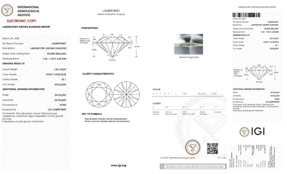 Round 1.50 Cts Fancy Vivd Blue VS1 IGI and 50 similar items