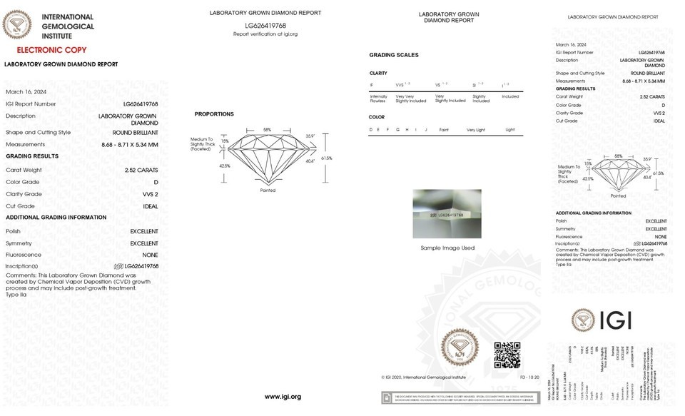 Authenticity Guarantee 2.52 Ct Round Cut IGI Certified Lab Grown CVD Diamond...