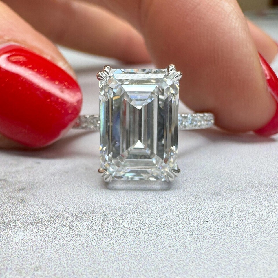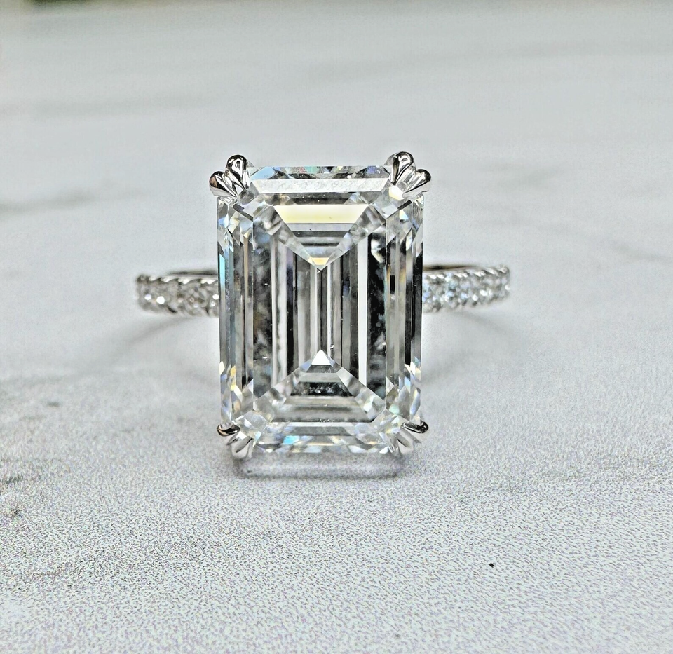 Authenticity Guarantee 5.32 Cts Emerald Cut E/VVS2 Lab Grown Diamond Engagem...