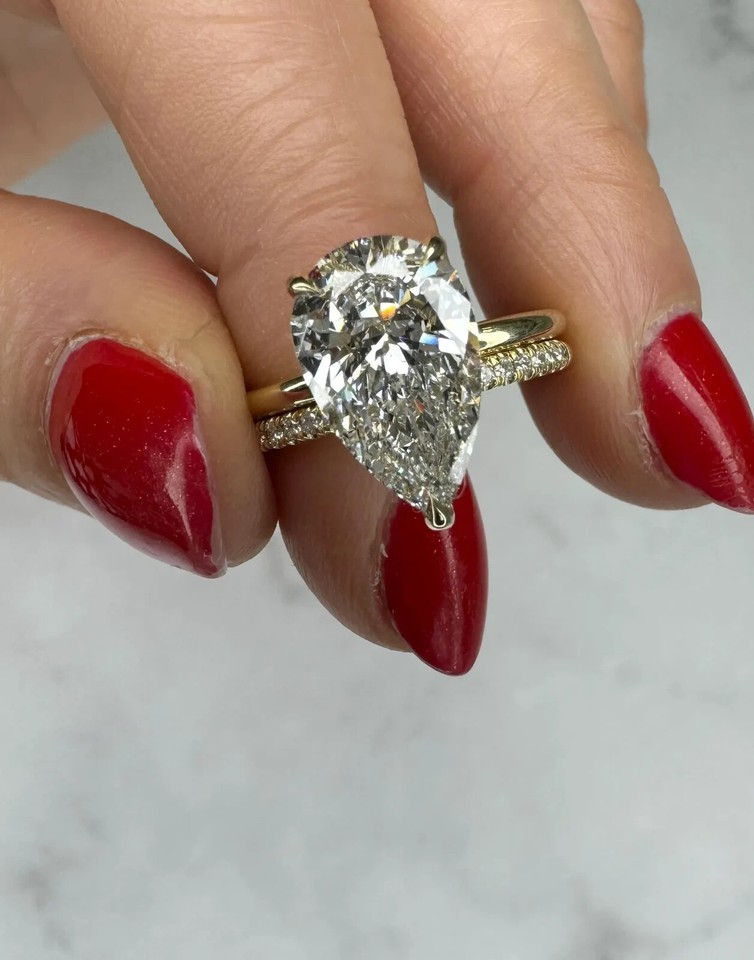 3.20 Cts Pear Cut E/VVS2 Lab Grown Diamond Engagement Ring 14k Yellow Gold
