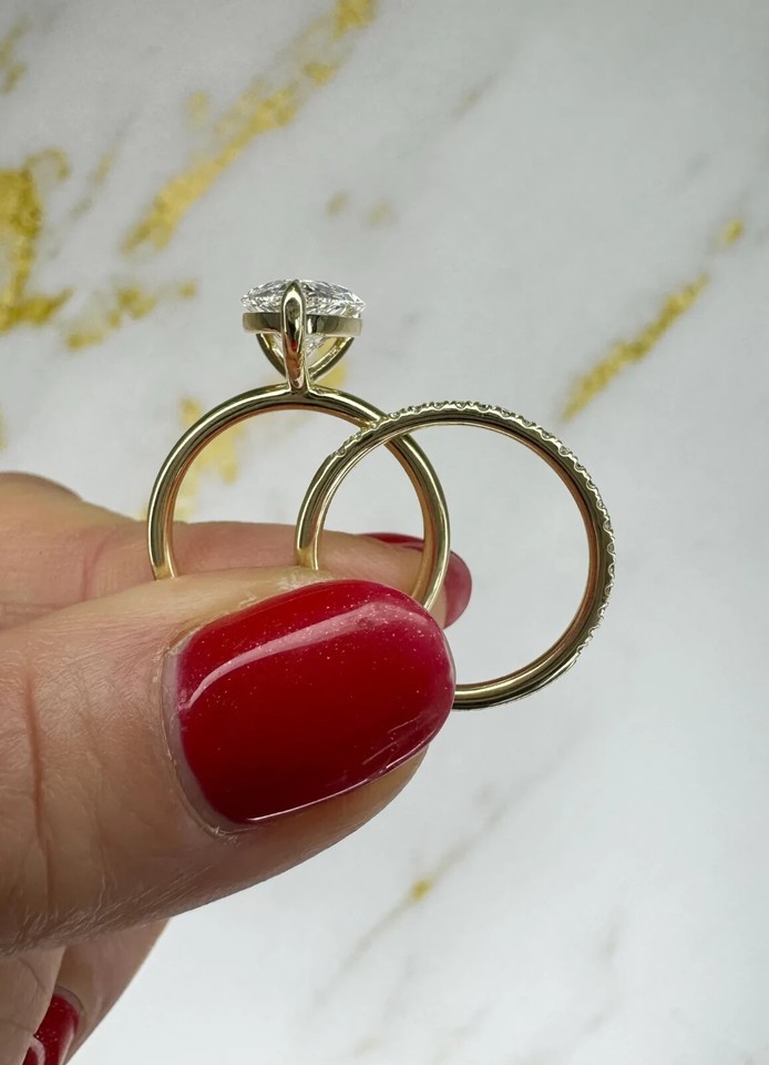 3.20 Cts Pear Cut E/VVS2 Lab Grown Diamond Engagement Ring 14k Yellow Gold