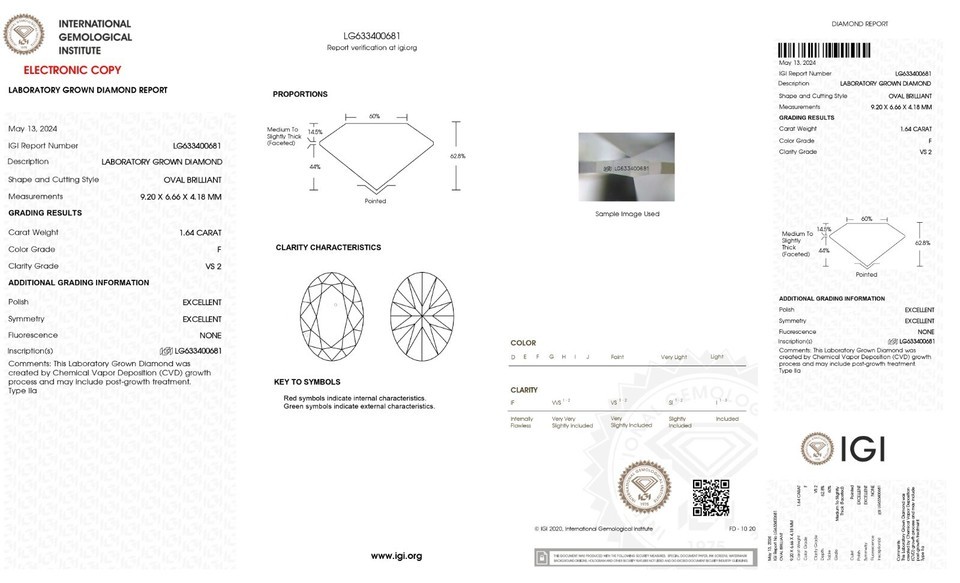 ? Please note that we will ship you same stone or exact similar stone with same color,clarity same carat weight certified stone. All Our Diamonds Are Certified And Laser inscripted.all of our diamonds are tested and certified with labs like IGI, GIA ,Etc.LabIGIReport #-ShapeOvalCarat1.64ColorFClarityVS2Cut-PolishExcellentSymExcellentFluorNoneLocationNew York, United StatesDepth62.8%Table60%GirdleMED to STKCrown14.5%, 36.7Pavillion44.0%, 40.5CuletNoneMeas9.20 x 6.66 x 4.18Ratio1.38BGMNoneGrowth TypeCVDPlease note that we are listing all of our stone's color clarity grade as per IGI Lab Report. IGI Lab is the 2nd most reputable trustworthy Lab after GIA. Every person can have a different opinion about the color clarity of the stone. So the stones you are getting can be f to h in color vs2 to si2 in clarity grades as per GIA standards but as IGI standards those are as mentioned in the listing. I am not sure how practical it is to use $75000 (3 Carat E VS!) Natural Diamond stone standard for the same color clarity grade (3 Carat EVS1) Lab Grown Stone which you are getting for $750. My advice to you is whatever authenticity says please please get the stone if you do not like then I will accept the return without any question in the next 30 days of purchase. I don't want you to miss the great opportunity to buy those beautiful lab grown stones which are 100% the same chemical other properties wise as natural Diamonds at 1% of price compared to Natural Diamond.