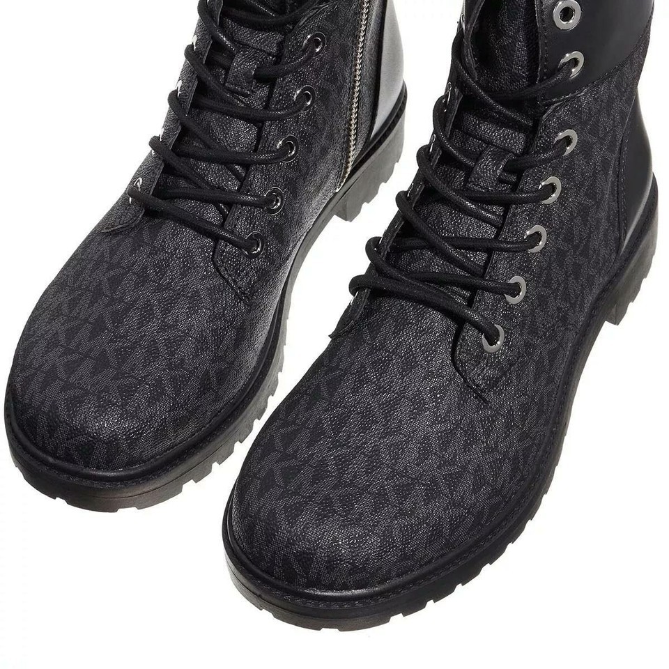 Michael Kors Women's Alistair Bootie Black 8.5 M Signature Logo Combat Boots NEW