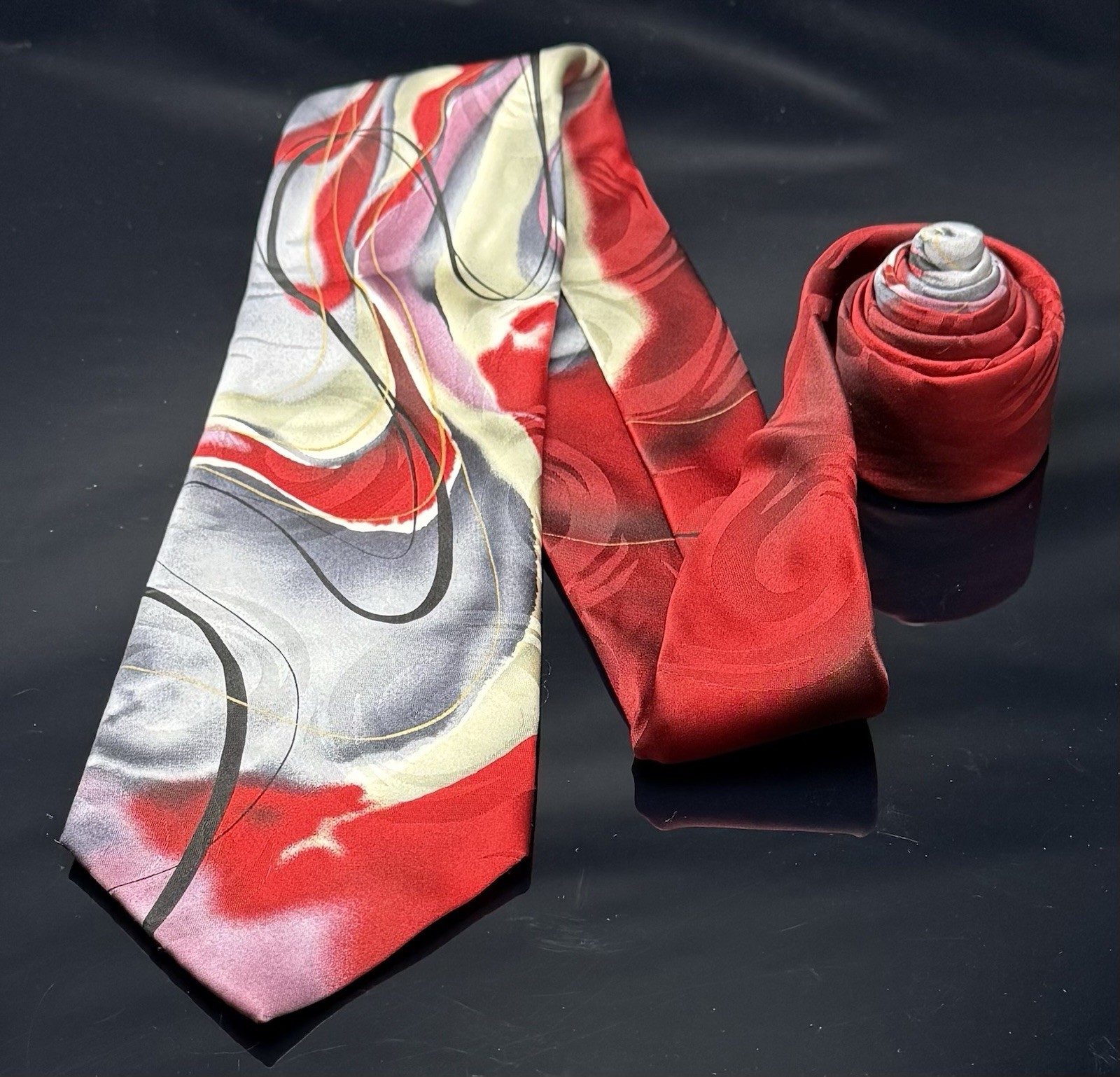 J. Garcia Collection 55 Designer Red Sun Movement Abstract Men's Tie 100% Silk