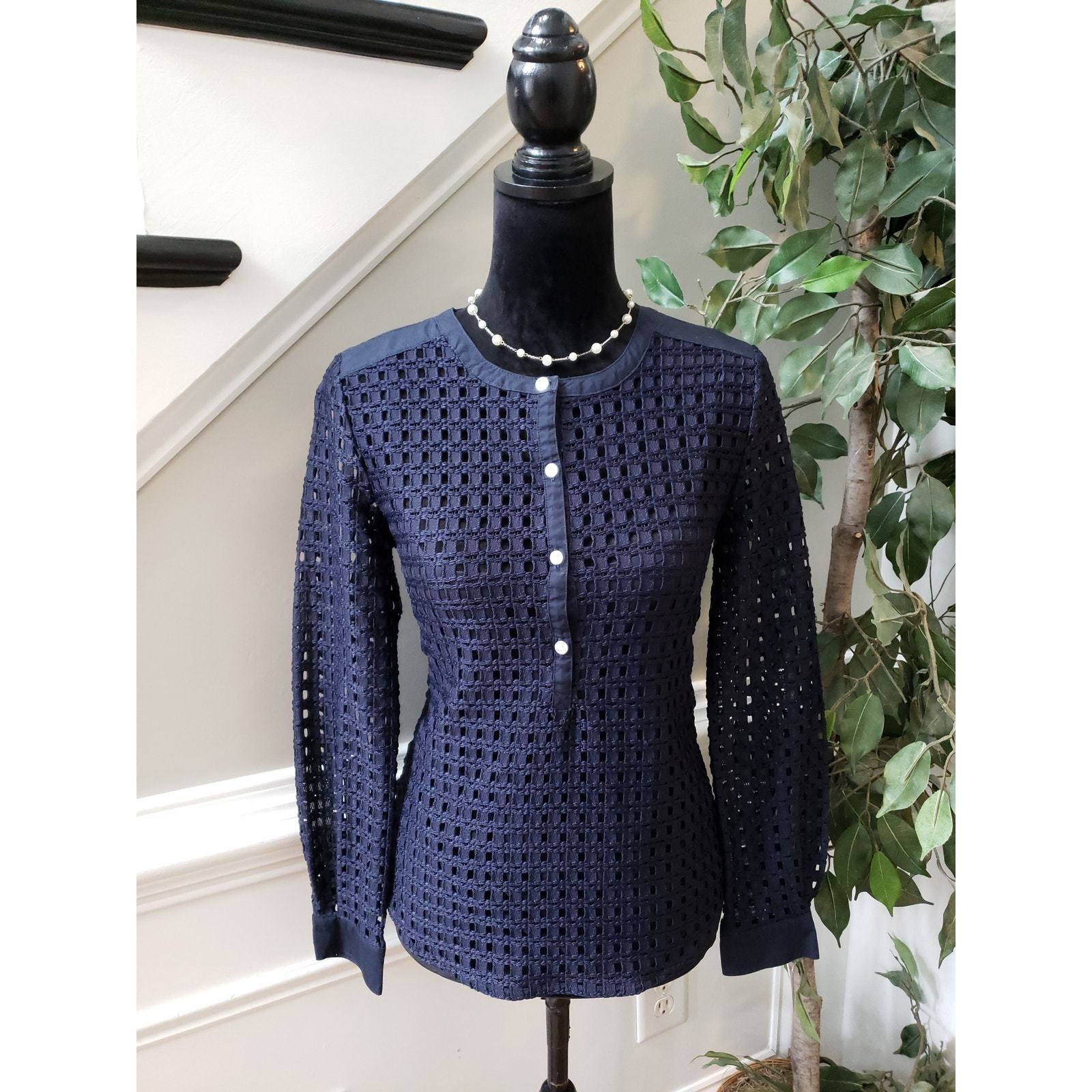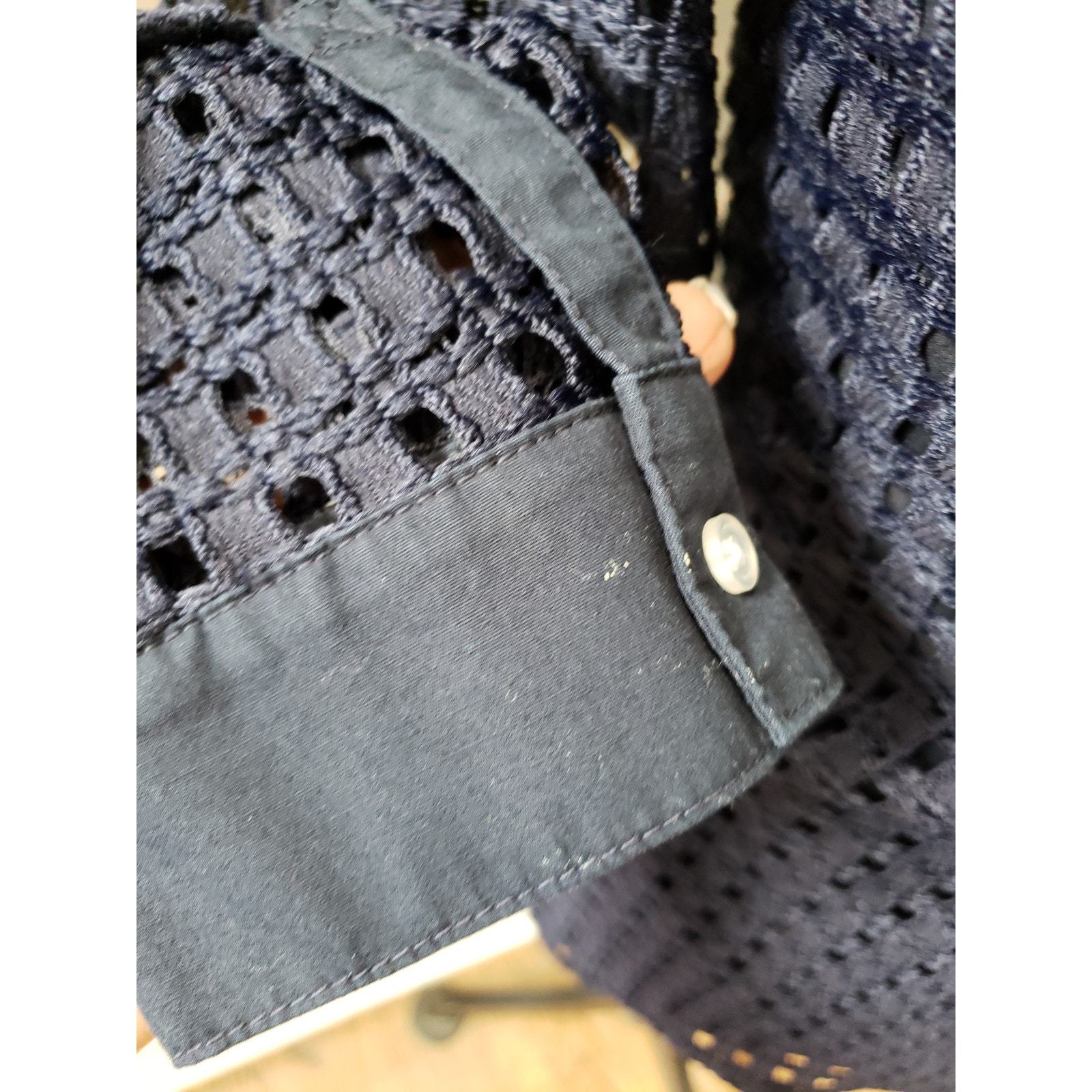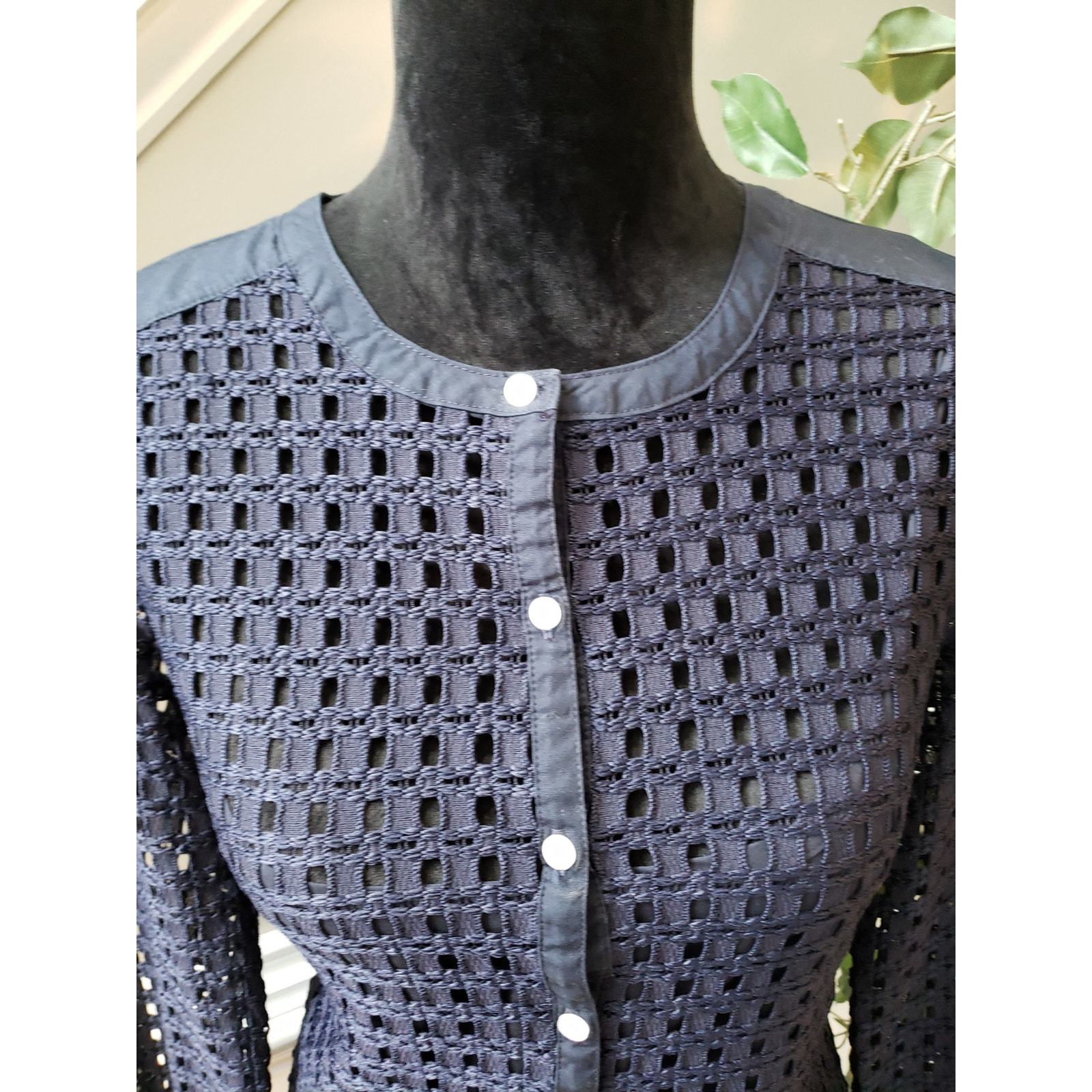 Banana Republic Blouse Women S Navy Eyelet Lace Long Sleeve Textured Button Top