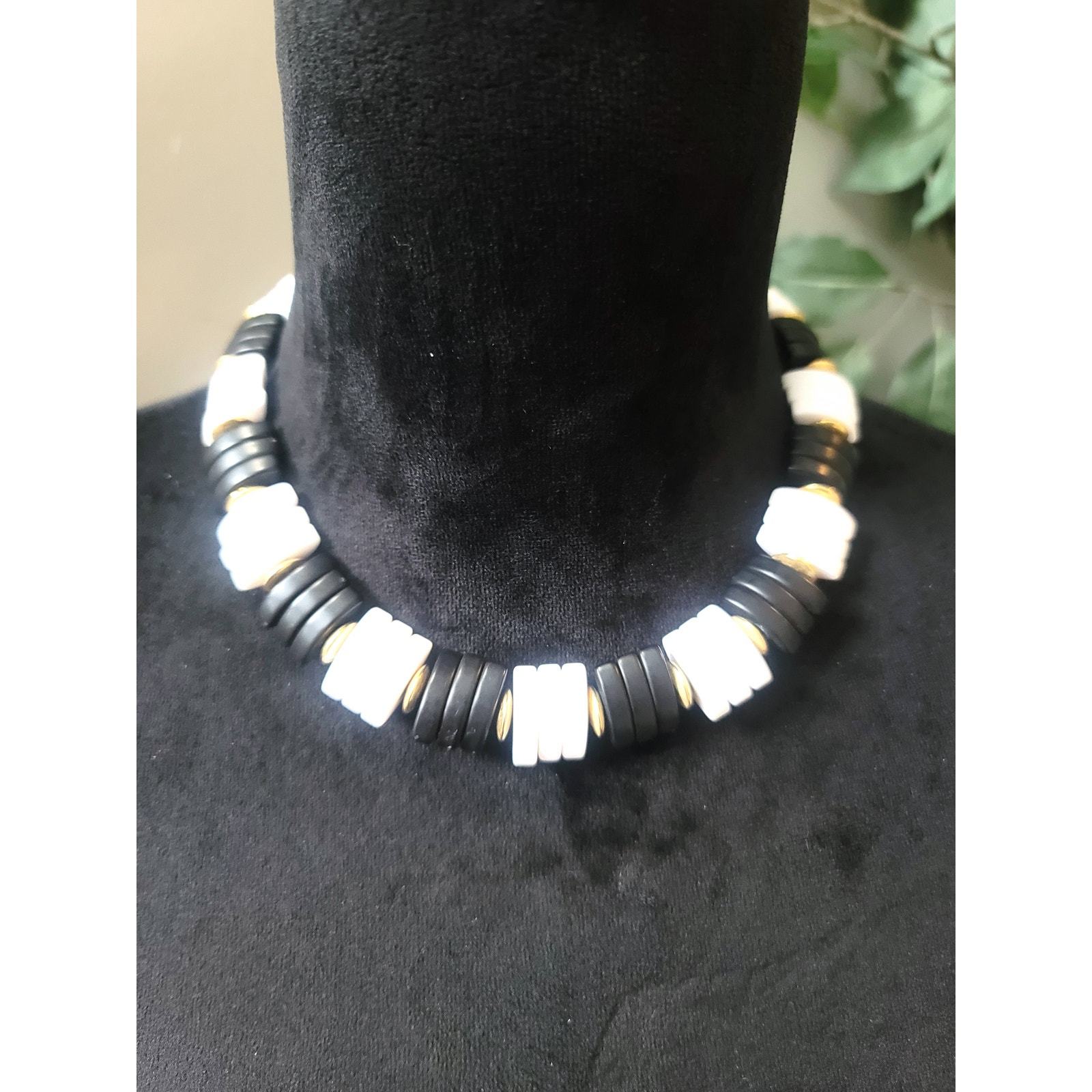 Women's Black White Beaded Necklace Gold and similar items