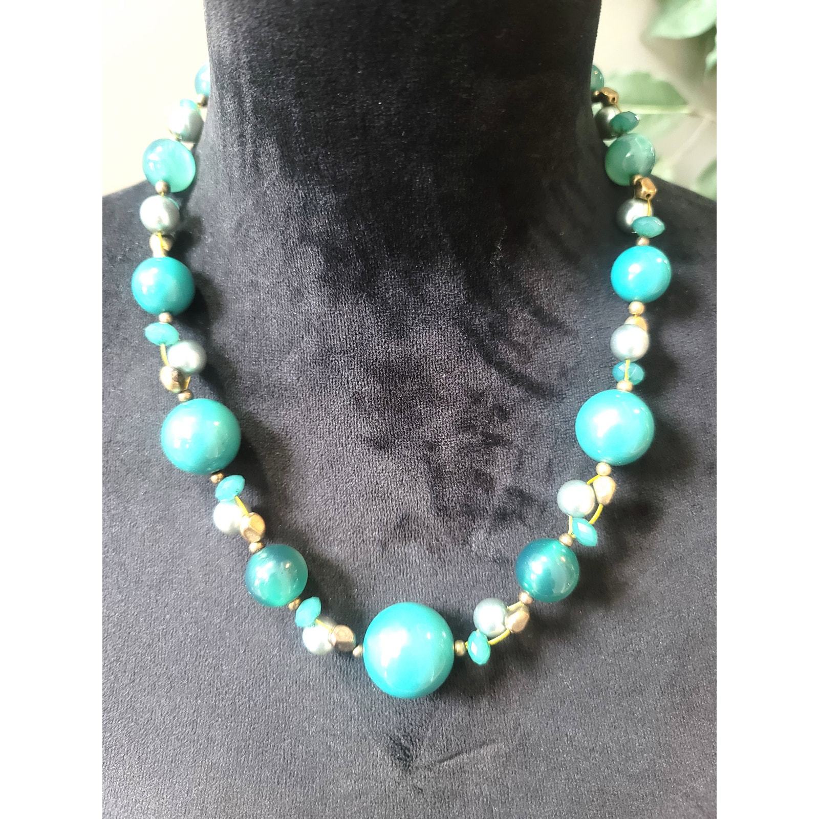 Women's Teal Blue Beaded Necklace Mixed Size and similar items