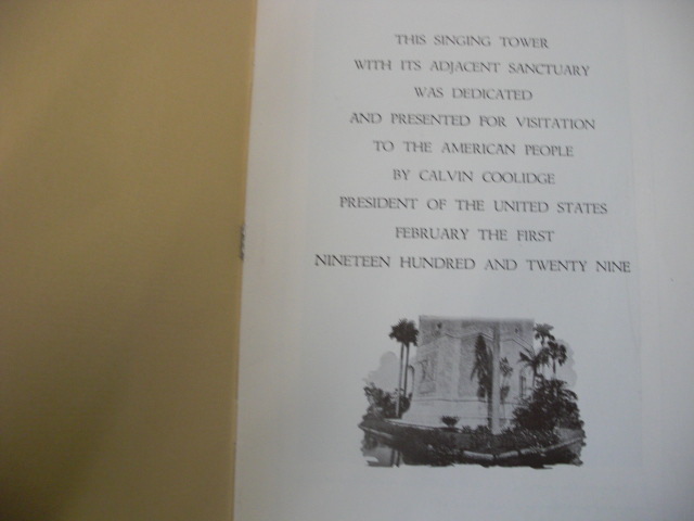 The American Foundation Inc. Fine. 1939. Wrappers. Size: 6 By 9 Inches. Pages: the program is a single sheet folded with 4 panels or pages. The souvenir pamphlet is 20 pages, Condition: The vintage souvenir booklet is in fine condition, The cover is soiled, photos and inside page are lilke new.. See Photos; Comments: this original program and vintage souvenir pamphlet are for the Eleventh Season 1938-1939 at the Singing Tower. The souvenir booklet gives a history of the tower and surrounding area with Black and white illustrations to every page. 2 full page color illustrations, the Tower and the Garden of Resurrection. A nice early souvenir booklet. The Sanctuary and singing Tower were Dedicated and Presented for visitation to the American people by President Calvin Coolidge on February 1st, 1929 but opened on December 2nd 1928.; Black and White and Color Illustrations in great condition,