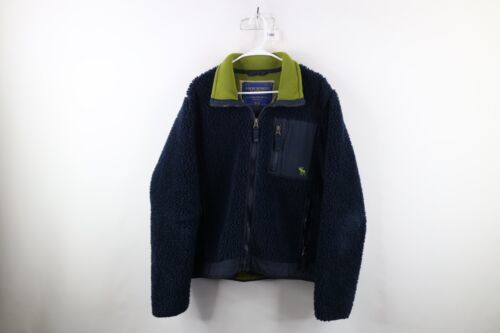 Vintage Abercrombie & Fitch Mens Large Heavyweight Deep Pile Fleece Jacket Blue