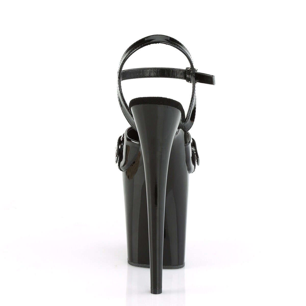 PLEASER FLAMINGO-809GB Black Patent Women 8" Heel Platform Ankle Strap Sandal
