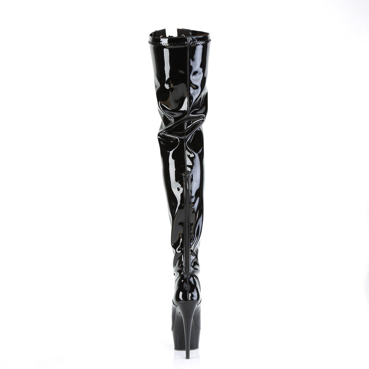 PLEASER DELIGHT-3027 Black Red 6" Heel Platform Front Lace Up Thigh High Boots