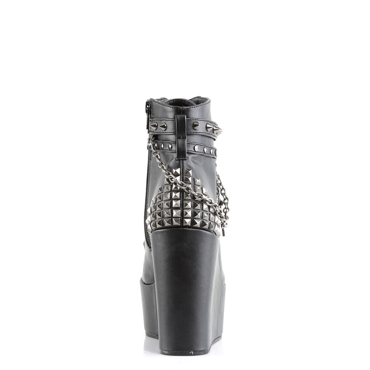 DEMONIA Womens Wedge Platform Cross Chains Goth Punk Gothic Ankle Boots Booties