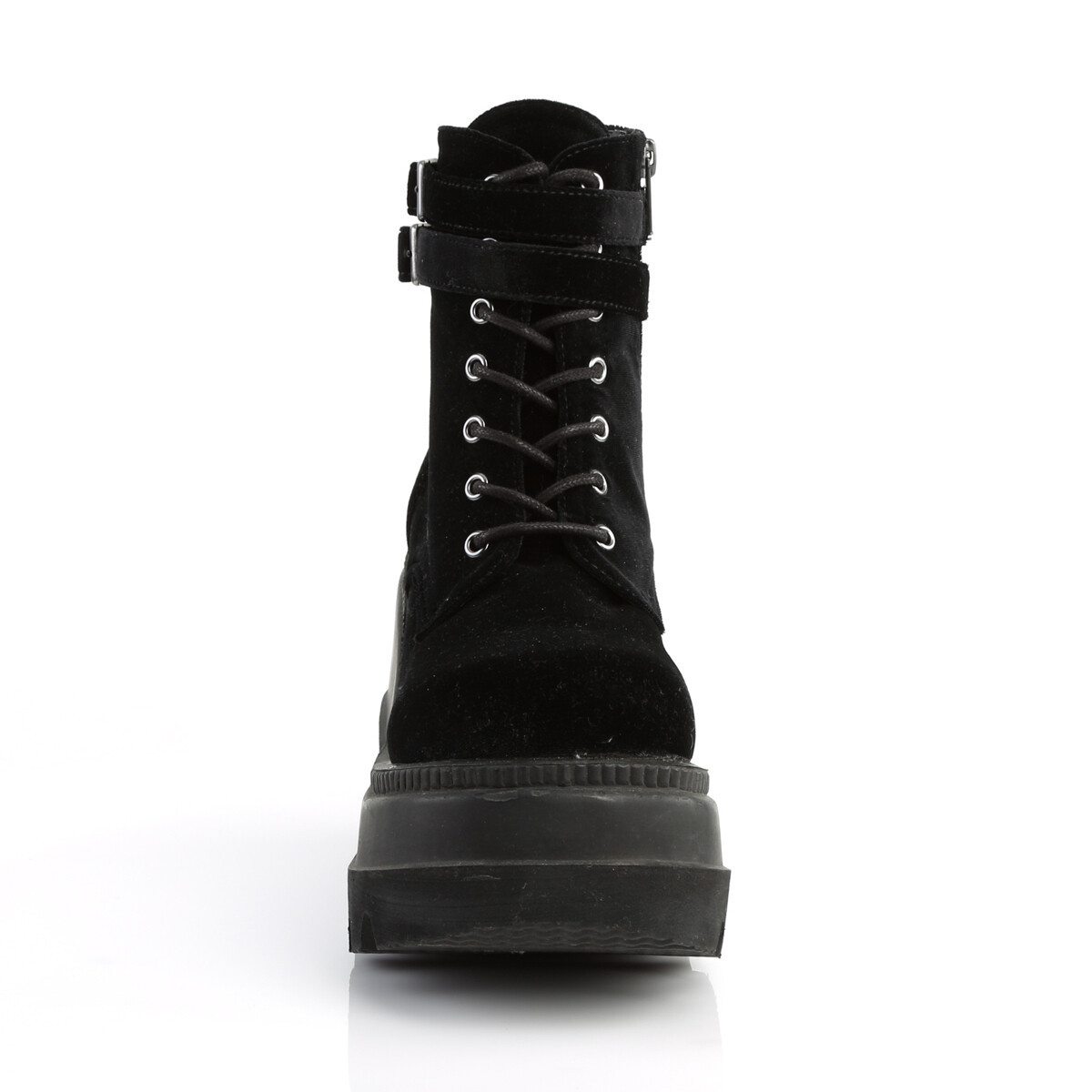 DEMONIA SHA52/BVEL 4 1/2" Wedge Platform Gothic Black Velvet Women's Ankle Boots