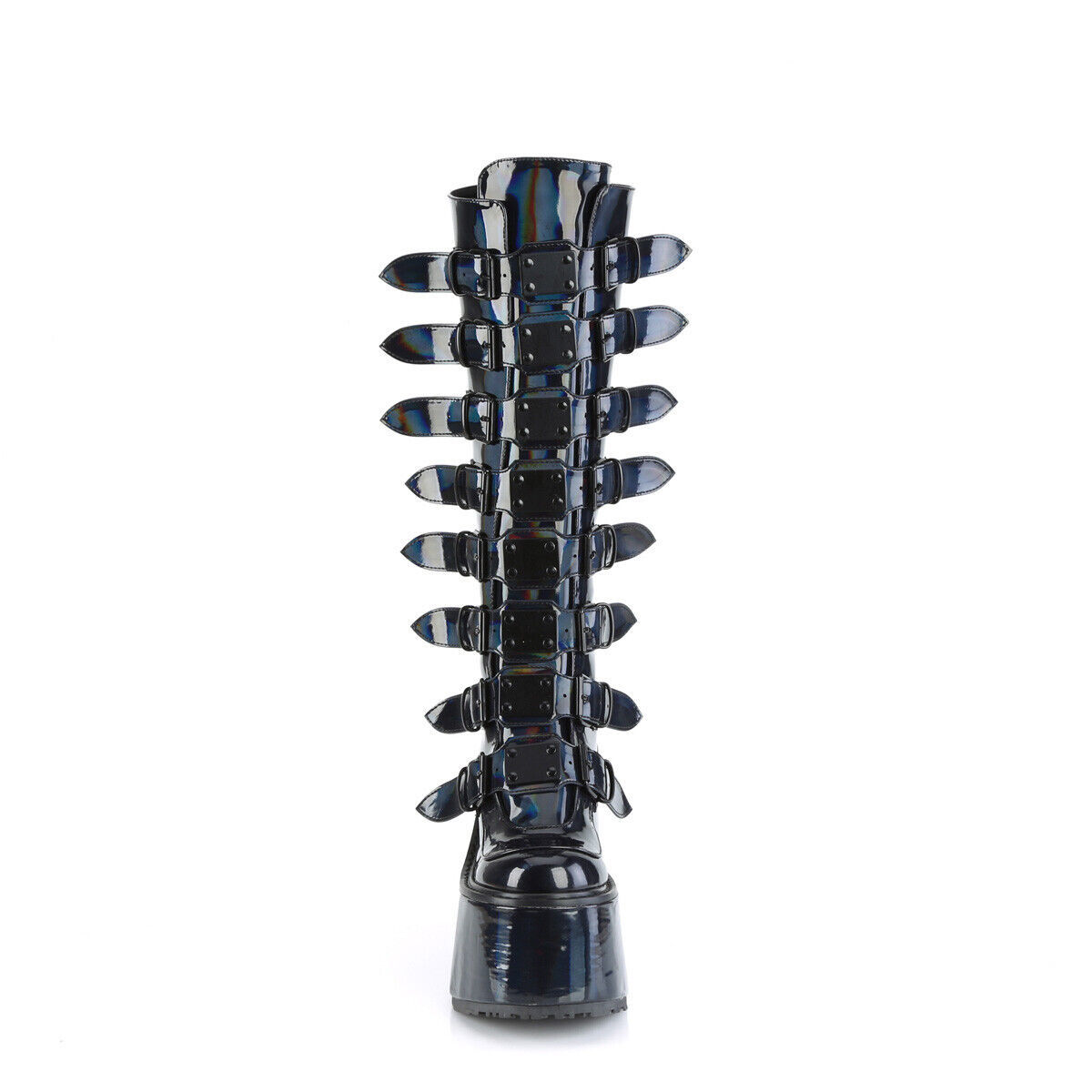 DEMONIA SWI815/BHG Wedge Platform Goth Black Holographic Women Knee High Boots