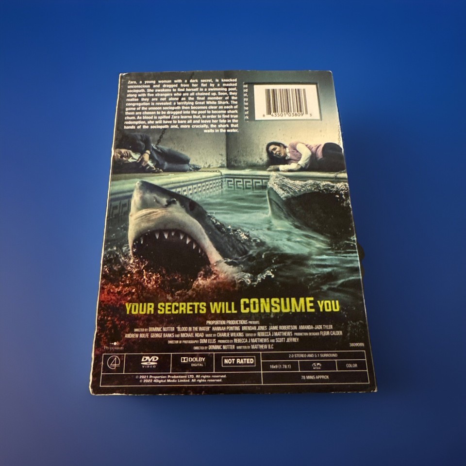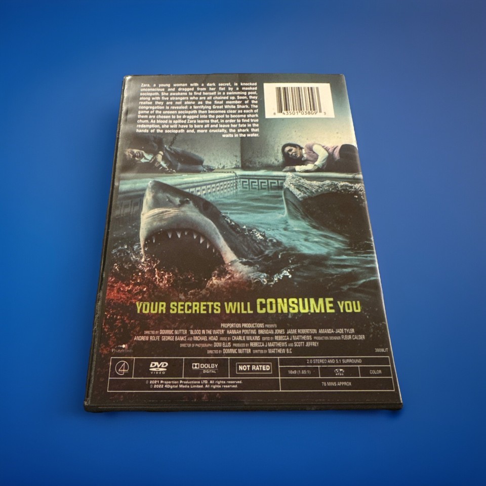 Dive into the chilling depths of 'Blood in the Water,' where the iconic Saw franchise crosses paths with the thrilling world of Jaws. This DVD release presents a gripping encounter of two menacing creatures that promise to keep you on the edge of your seat for 80 minutes of intense horror.