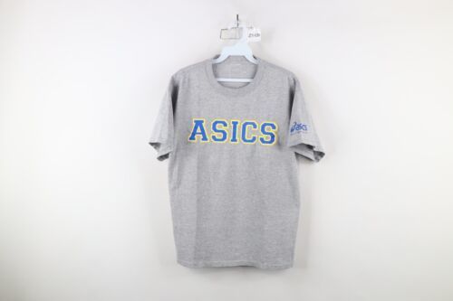 Vintage Asics Mens Size Medium Spell Out Block Letter Short Sleeve T-Shirt Gray