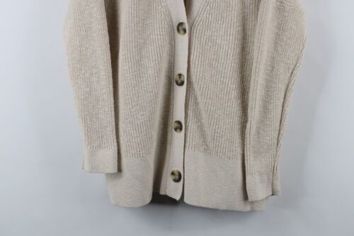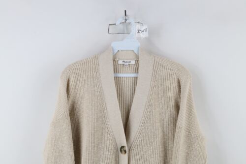 Madewell Womens Medium Blank Cotton Ribbed Knit Lovell Cardigan Sweater Beige