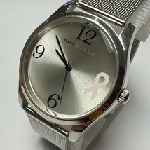 Dana Buchman Quartz Watch Women Silver Pink Ribbon Mesh Analog Silver New Batter